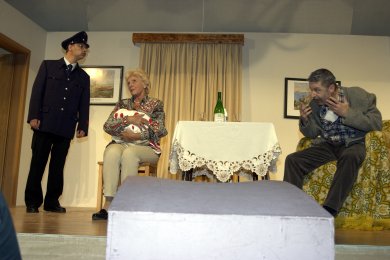 Geplant ist die Aufführung eines offenbar ernsten Stücks. Zum Mißvergnügen der Regie und zur Erheiterung des Publikums hält sich der Hauptdarsteller jedoch mehr an seine spontanen Einfälle als an seinen vorgeschriebenen Text. Am liebsten spielt er eine Szene, die ihm engeren Kontakt mit seiner Mitspielerin ermöglicht. Sein offensichtliches Vergnügen an der jungen Dame mißfällt einem wichtigen Teil des Publikums, nämlich seiner Frau, deren Furor nicht vor der Rampe haltmacht. Fortan ist sie die Hauptdarstellerin mindestens bis zum unvermuteten Auftauchen eines trinkfesten Feuerwehrmanns...