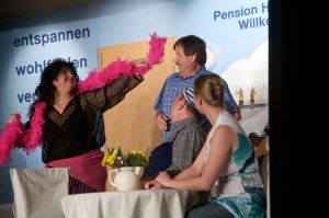 In der Pension „Himmelreich“ ist die Hölle los – Pächterin Olga Sukowa hat alles andere als eine Glückssträhne. Nicht nur, dass ihre Köchin kündigt, weil ihr Lohn im Rückstand ist. Nein, nun erfährt Olga auch noch, dass die Besitzerin der Pension verstorben ist. Und anstatt dass Olga, wie geplant, um einen Aufschub der Pacht bitten kann, wird ihr durch einen Brief mitgeteilt, dass der neue Besitzer inkognito erscheinen wird, um sich ein Bild von Pension und Pächterin zu machen. Zum Glück springt Anna, die eigentlich gerade ihren Urlaub verbringt, als Aushilfsköchin ein. Einige Feriengäste treffen ein, die alle als neue Besitzer in Frage kämen: da ist etwa die mondäne Maria von Brenz, für die sich Olgas chronisch abgebrannter Exmann Bernd sehr interessiert. Doch welche Rolle spielt ein neugieriger Reporter? Oder die junge Lilli, die überraschend schnell Freundschaft mit einem jungen Herrn schließt? Zum Glück kommt Olgas Vater Kuno auf die clevere Idee, als Faktotum immer dort zur Stelle zu sein, wo es etwas auszuspionieren gibt. Auch Olgas resolute Schwester Paula hilft tatkräftig und so lüftet sich schließlich das Geheimnis ums „Himmelreich“.