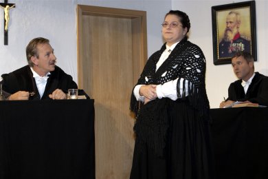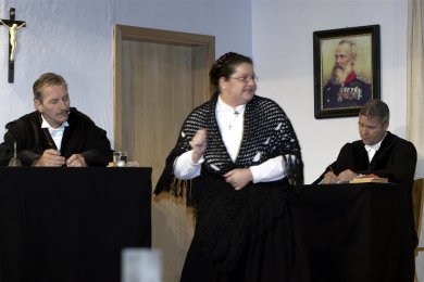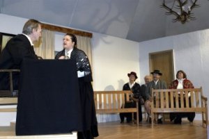 Vor dem Amtsgerichtsrat Alois Stierhammer sind zwei zänkische „Weibsbilder“ erschienen. Eine peinliche Geschichte steht zur Verhandlung an: der Tod eines stolzen Gockel. Der tierliebende Amtsgerichtsrat ist voller Zorn, aber trotzdem findet er ein weises Urteil.