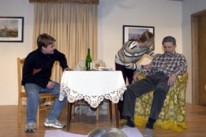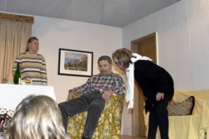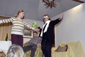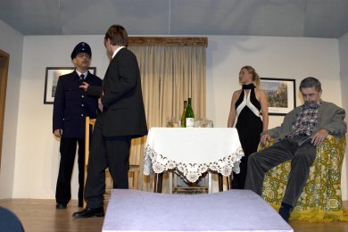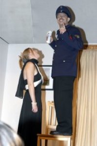Geplant ist die Aufführung eines offenbar ernsten Stücks. Zum Mißvergnügen der Regie und zur Erheiterung des Publikums hält sich der Hauptdarsteller jedoch mehr an seine spontanen Einfälle als an seinen vorgeschriebenen Text. Am liebsten spielt er eine Szene, die ihm engeren Kontakt mit seiner Mitspielerin ermöglicht. Sein offensichtliches Vergnügen an der jungen Dame mißfällt einem wichtigen Teil des Publikums, nämlich seiner Frau, deren Furor nicht vor der Rampe haltmacht. Fortan ist sie die Hauptdarstellerin mindestens bis zum unvermuteten Auftauchen eines trinkfesten Feuerwehrmanns...